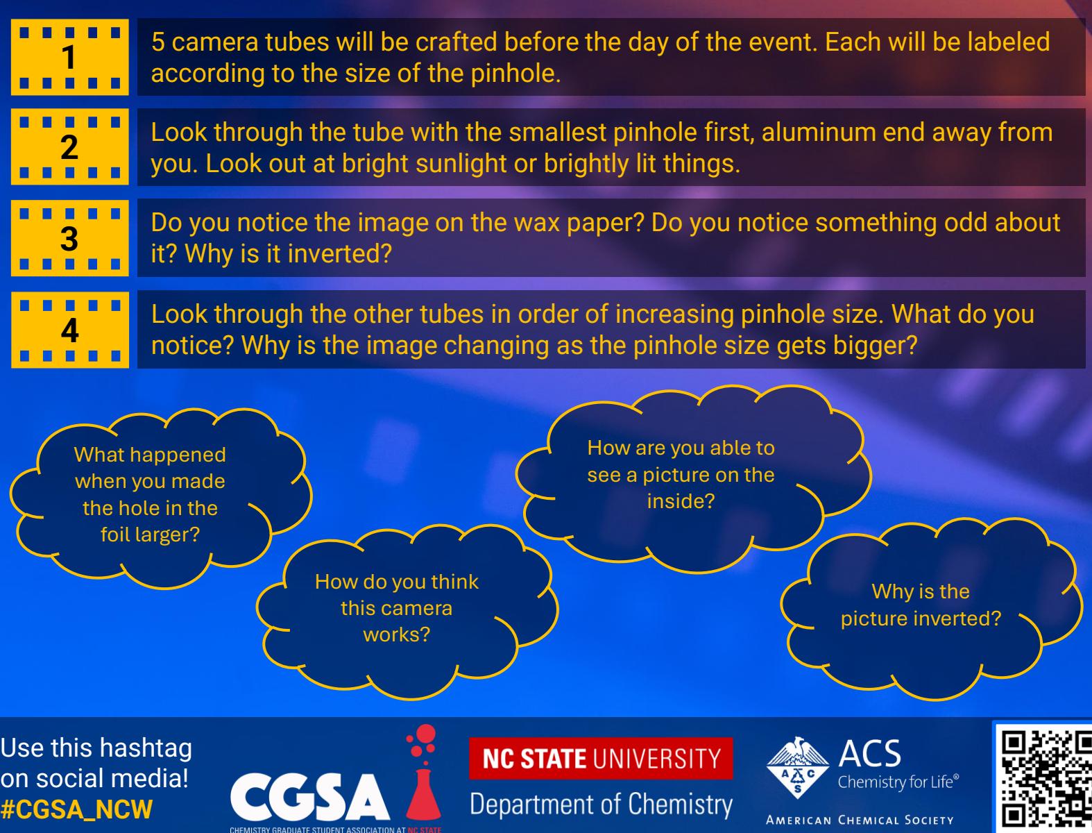 At the most basic level, digital cameras today and the cameras of the past share the same basic structure - they are dark containers with a hole in one side to let in light. Can you identify where the hole/lens on a contemporary or smartphone camera is? Today, we have created our own very basic cameras out of materials you can find around your house! They are called pinhole cameras because the hole to let in the light will be the size of the tip of a pin. This activity has been adapted from Houston Center for Photography.